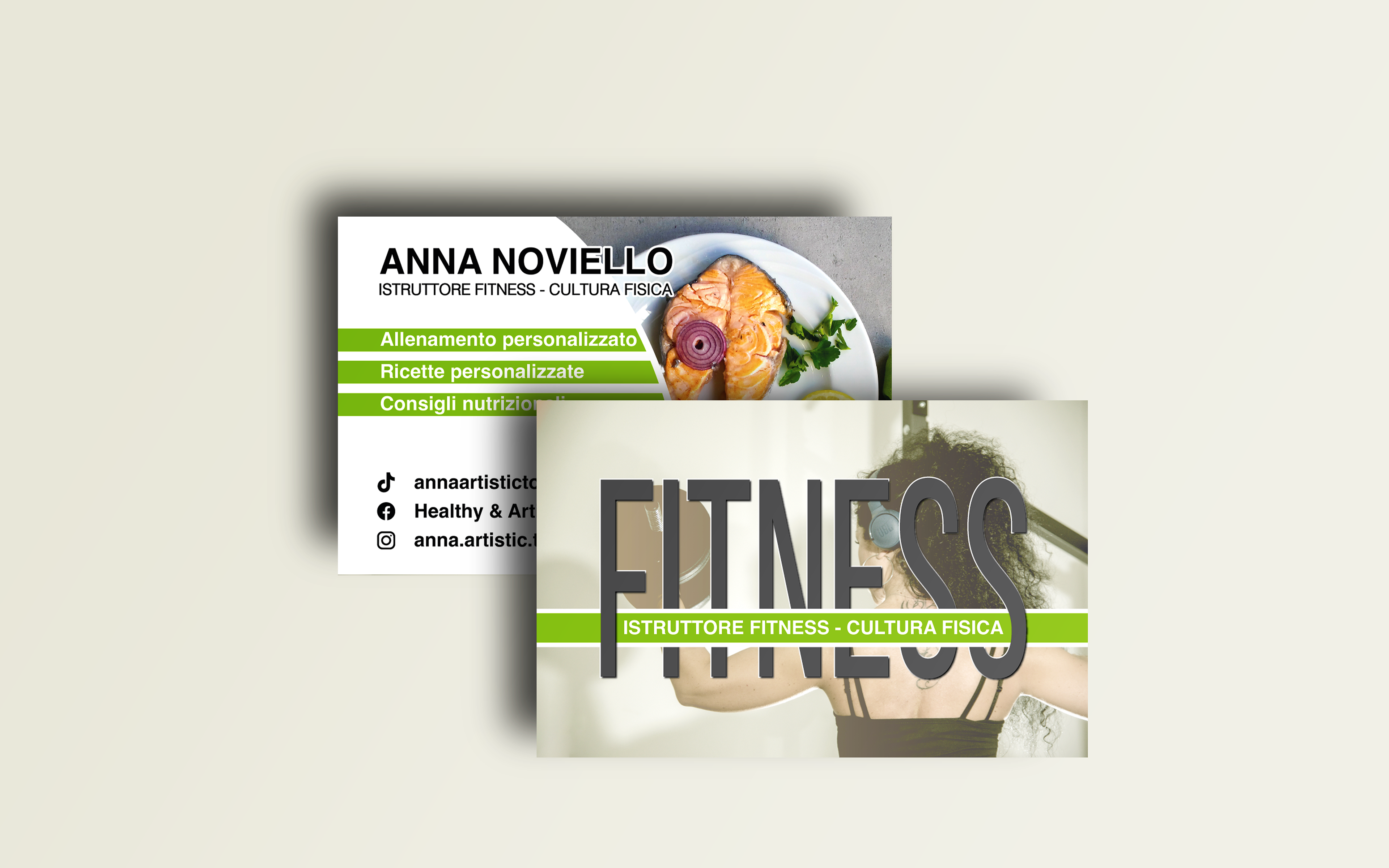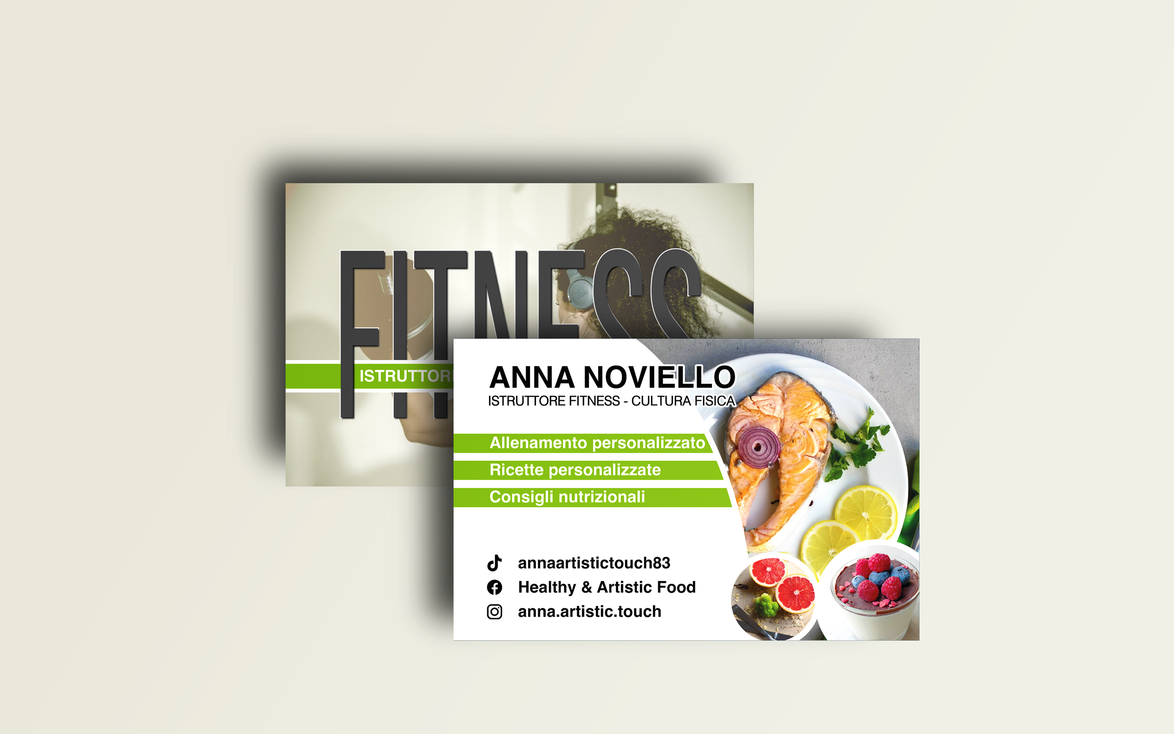 Biglietti da visita + locandine social per Istruttore Fitness - Anna Noviello 🏋️♀️ GRAFICA & STAMPA